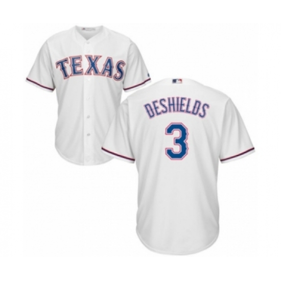 Youth Majestic Texas Rangers #3 Delino DeShields Replica White Home Cool Base MLB Jersey