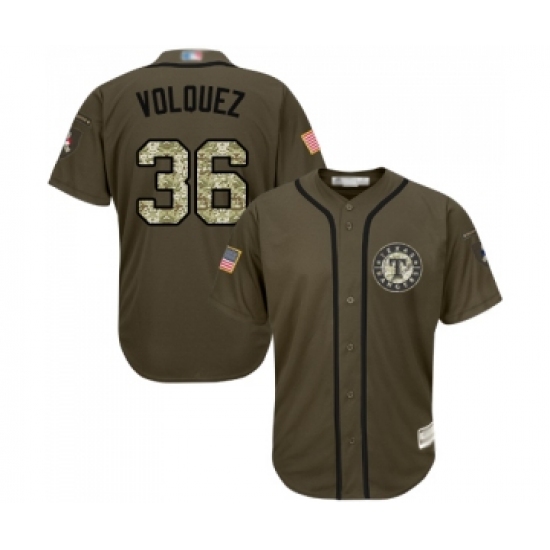 >Youth Texas Rangers #36 Edinson Volquez Authentic Green Salute to Service Baseball Jersey