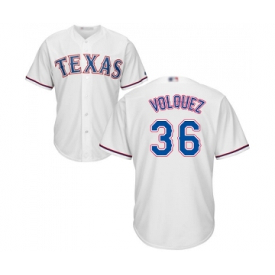 Youth Texas Rangers #36 Edinson Volquez Replica White Home Cool Base Baseball Jersey