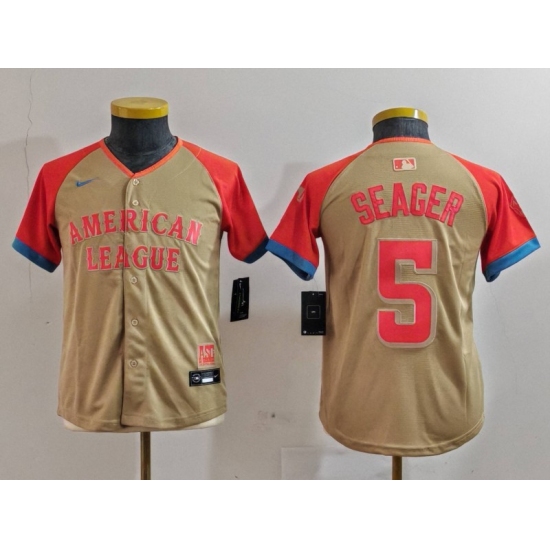 >Youth Texas Rangers #5 Corey Seager Cream 2024 All Star Limited Stitched Jersey