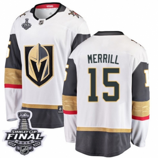 >Youth Vegas Golden Knights #15 Jon Merrill Authentic White Away Fanatics Branded Breakaway 2018 Stanley Cup Final NHL Jersey