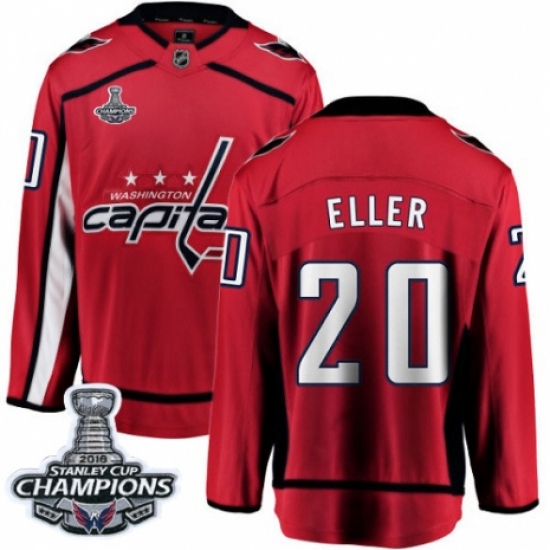 Men's Washington Capitals #20 Lars Eller Fanatics Branded Red Home Breakaway 2018 Stanley Cup Final Champions NHL Jersey