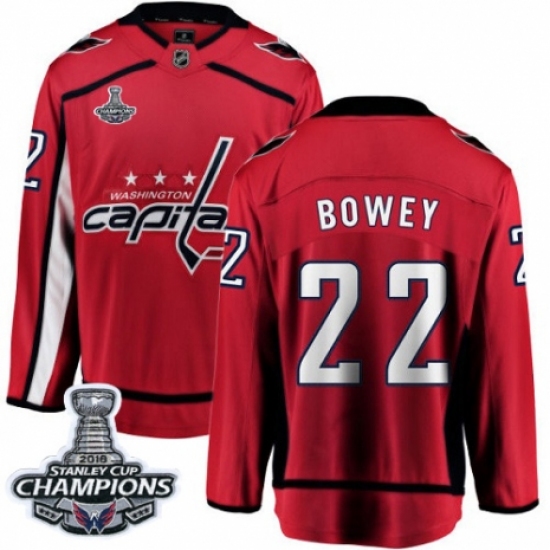 Youth Washington Capitals #22 Madison Bowey Fanatics Branded Red Home Breakaway 2018 Stanley Cup Final Champions NHL Jersey