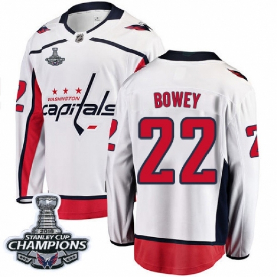 Youth Washington Capitals #22 Madison Bowey Fanatics Branded White Away Breakaway 2018 Stanley Cup Final Champions NHL Jersey