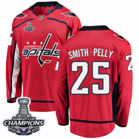 Men's Adidas Washington Capitals #25 Devante Smith-Pelly Authentic Red Home 2018 Stanley Cup Final Champions NHL Jersey