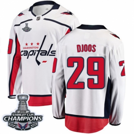 Men's Adidas Washington Capitals #29 Christian Djoos Authentic White Away 2018 Stanley Cup Final NHL Jersey