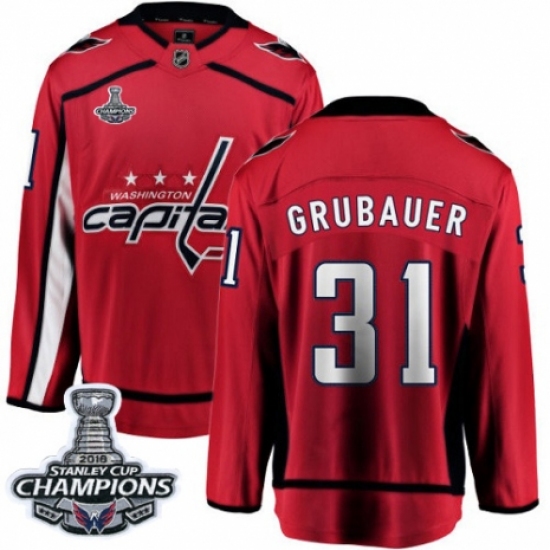 Men's Adidas Washington Capitals #31 Philipp Grubauer Premier Red Home 2018 Stanley Cup Final Champions NHL Jersey