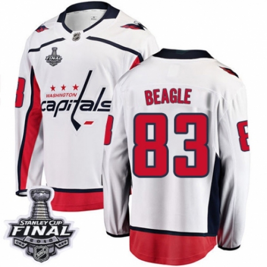 >Youth Washington Capitals #83 Jay Beagle Fanatics Branded White Away Breakaway 2018 Stanley Cup Final NHL Jersey