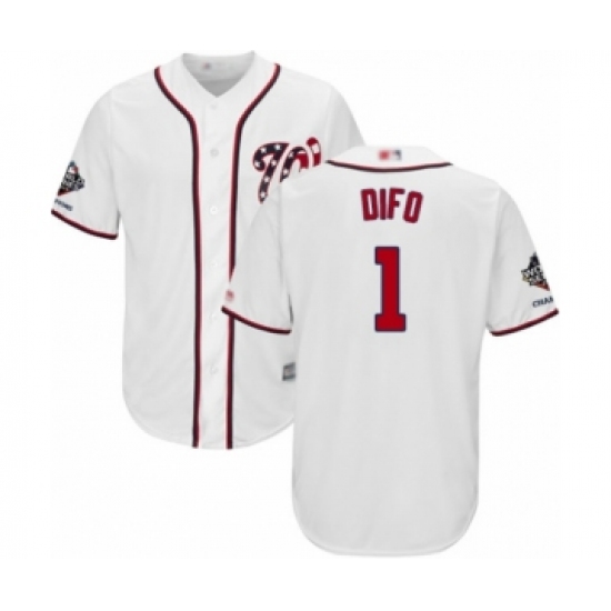 Youth Washington Nationals #1 Wilmer Difo Authentic White Home Cool Base 2019 World Series Champions Baseball Jersey