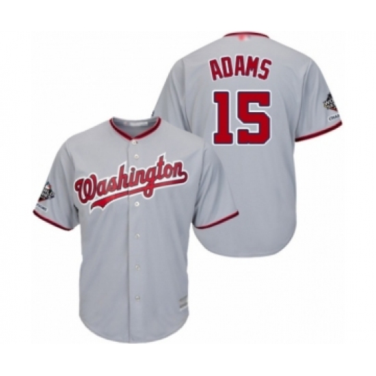 >Youth Washington Nationals #15 Matt Adams Authentic Grey Road Cool Base 2019 World Series Champions Baseball Jersey